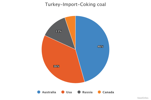 В указанный период крупнейшим источником импорта коксующегося угля в Турцию была Австралия с 1,48 млн тонн, что на 29,3% меньше, чем в предыдущем году. За Австралией следуют США с 1,18 млн т, что на 14,3% меньше по сравнению с аналогичным периодом предыдущего года, и Россия с 420 860 т, что на 67,2% больше по сравнению с аналогичным периодом прошлого года.