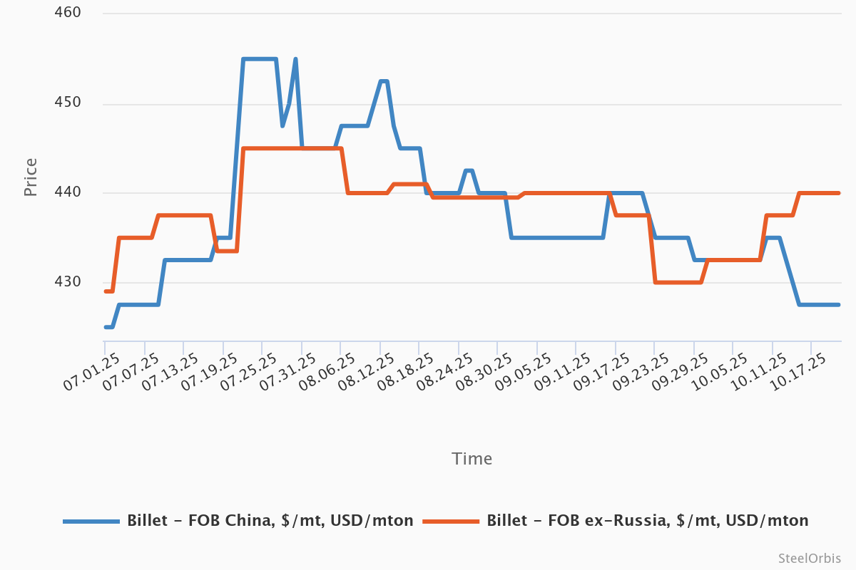 Цены на экс-китайские слитки колебались на достаточно высоком уровне вблизи $ 450/mt FOB с 21 июля по 15 августа, когда был заключен ряд контрактов на сентябрьскую отгрузку. Кроме того, разрыв в экспортных ценах между китайской и черноморской заготовками сократился, что способствовало снижению конкурентоспособности китайского экспорта заготовок. В октябре-начале ноября объемы экспорта полуфабрикатов из Китая также будут немного сокращены, особенно по сравнению с результатами, наблюдаемыми в первом полугодии, но ежемесячный объем все еще будет намного выше 1 миллиона тонн. В декабре поставки, вероятно, снова возрастут, учитывая недавнее падение цен и меньшее, чем ожидалось, улучшение местного спроса.