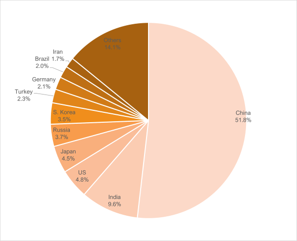 В сентябре производство сырой стали в Азии составило 102,9 миллион тонн, вниз 2,1 процента в годовом исчислении. Производство Китая составило 73,5 миллиона тонн, что на 4,6 процента ниже, при этом 6,4 миллиона тонн было произведено Японией, что снизилось на 3,7 процента, 13,6 миллиона тонн было произведено Индией, увеличившись на 13,2 процента, а 5 миллионов тонн было произведено Южной Кореей, снизившись на 2,4 процента, при всех сравнениях в годовом исчислении.