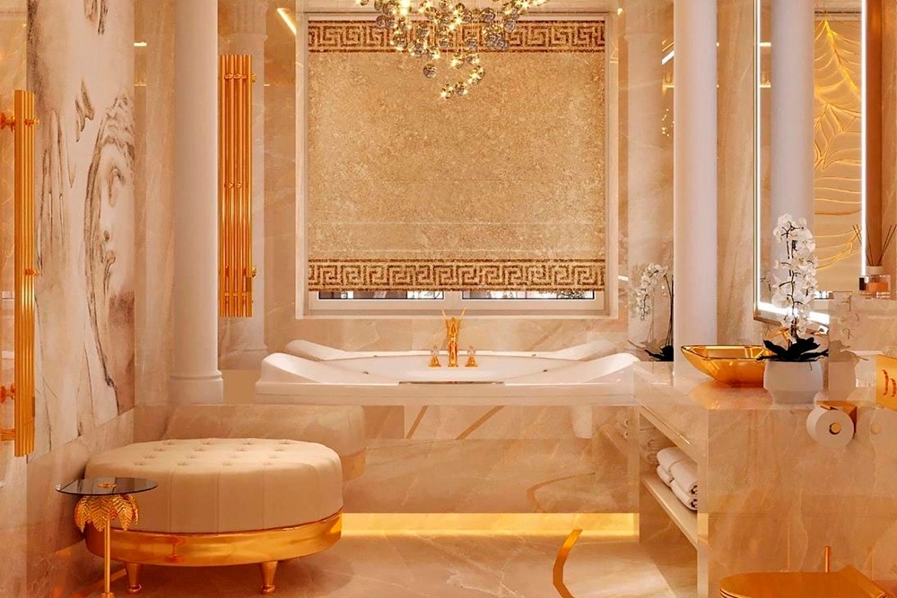 Эскизы интерьеров родовых залов министр уже продемонстрировала - яркая роспись стен, полов и потолков, разноцветная плитка и мрамор, пуфики и гамаки, много позолоты, золотые краны, раковины.