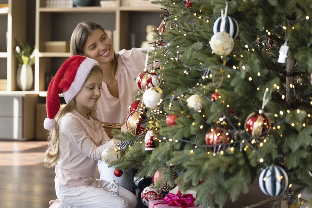 Украшая елку с малышом, избегайте острых или хрупких игрушек. Лучше выбрать мягкие и легкие украшения, такие как тканевые или пластиковые. Убедитесь, что электрические гирлянды надежно закреплены, чтобы избежать их случайного потягивания или запутывания. Избегайте украшений с мелкими деталями. Если у вас есть стеклянные шары или другие хрупкие элементы, разместите их на верхней части елки.