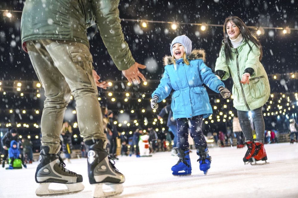Катание на коньках - отличная возможность организовать веселый семейный отдых. Фото: iStockНовогодняя фотосессия