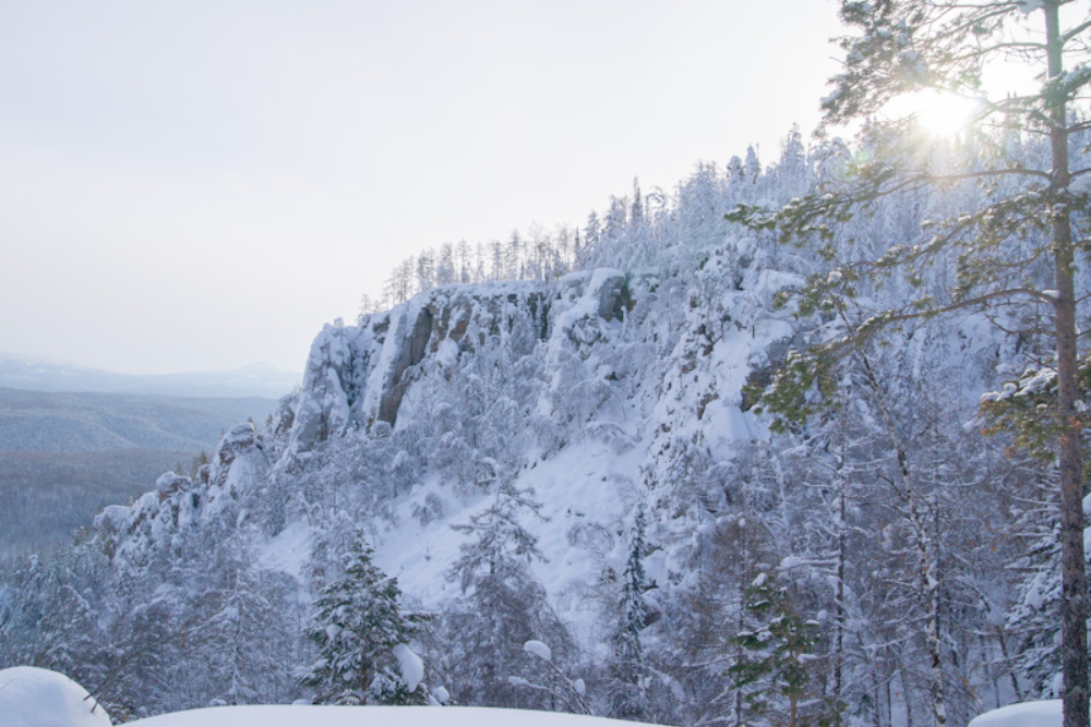 Аналогично можно добраться до Розовых скал (Кызыл-Таш) у реки Инзер. Они получили свое название из-за розоватого камня. С высоты открывается вид на розоватую стену и заснеженные леса.